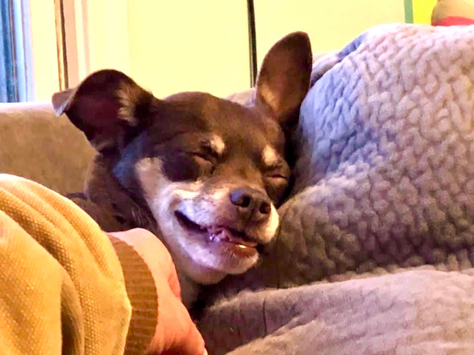 He had a ton of applications but only a handful were a match enough for a meet and greet. Either his wild side was too much for them or he flat out turned them down. On every meet and greet for him and for others he would scope out the whole house and find ANY crumbs left behind unknown under couches. He also tested their reactions to allowing dogs on furniture when he’d boldly jump right up on the back cushion and check out the neighborhood through the window. He also decided when it’s time’s up and time to leave and would make it very clear to me. Bonzai had one meet and greet though that went super well and we were sure it was a match. It was close to Christmas and I wanted Bonzai here for Christmas so we set it up for a few days after and Santa brought his gifts here. On January 13, 2020 I picked Bonzai up from his foster to adopt. It just wasn’t a match. So they ended up adopting Vlad, who IS a perfect match and Bonzai came home to massages by the fire. That moment I picked him up I was sad for him but selfishly happy for me. He saw me and came running to me and jumped right in my arms covering me with kisses and the best hug ever. It turns out he had missed me as much as I had missed him and we were both so gloriously happy and excited.